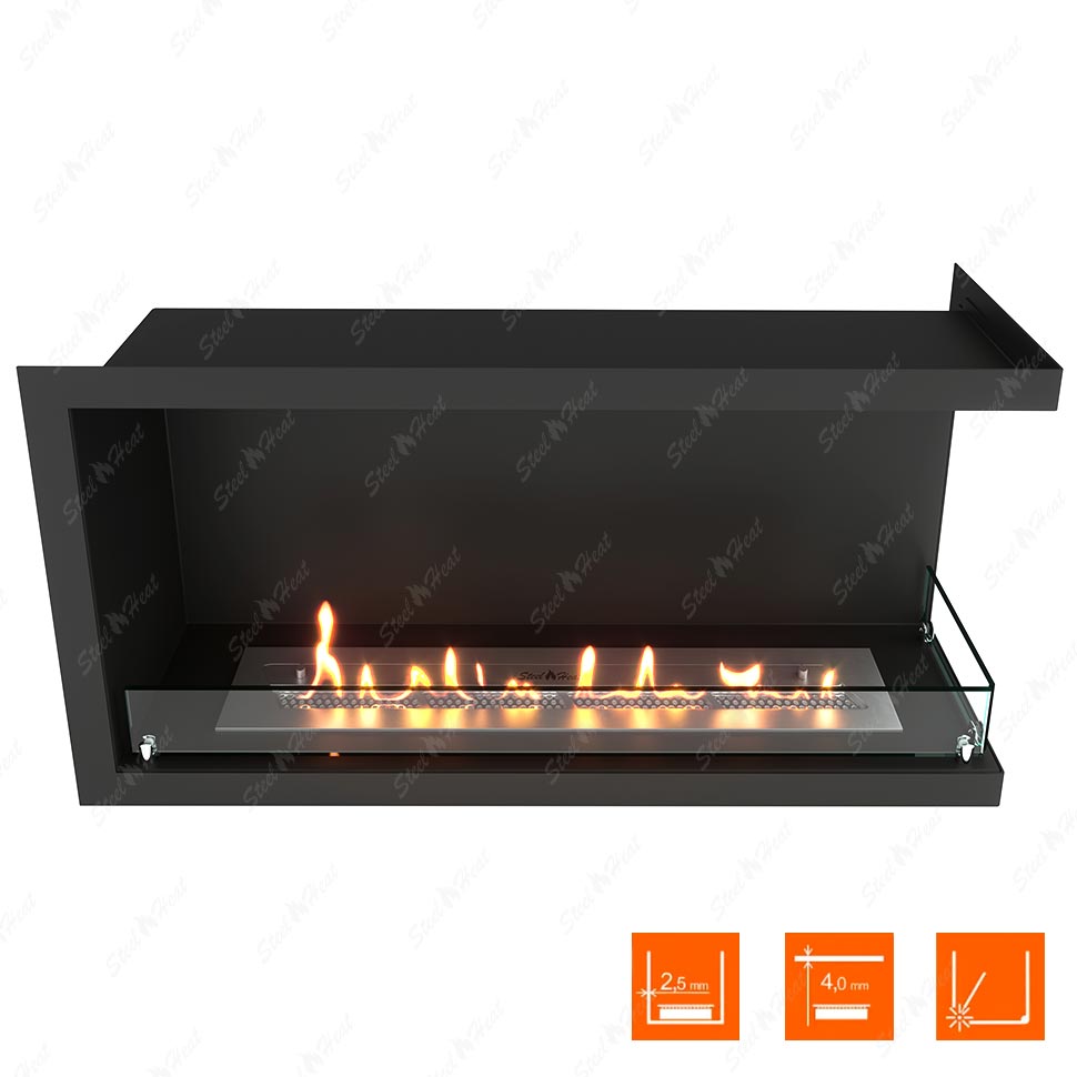 Встраиваемый Биокамин угловой SteelHeat Leader 900 правый предназначен для встраивания в глухие ниши из гипсокартона, кирпича, пеноблоков, бетона.